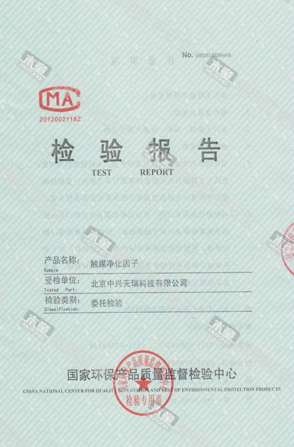 木童觸媒凈化因子效果檢驗報告